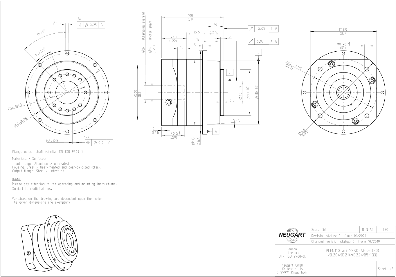 PLFN110 gearbox structure and dimension drawing